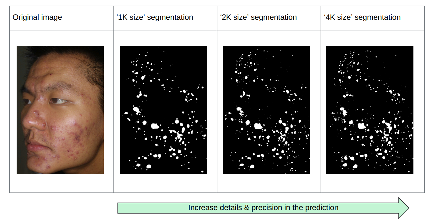 - 1K: we re-scale the image so that the face corresponds to 1000px for the acne segmentation step (lower resolution)