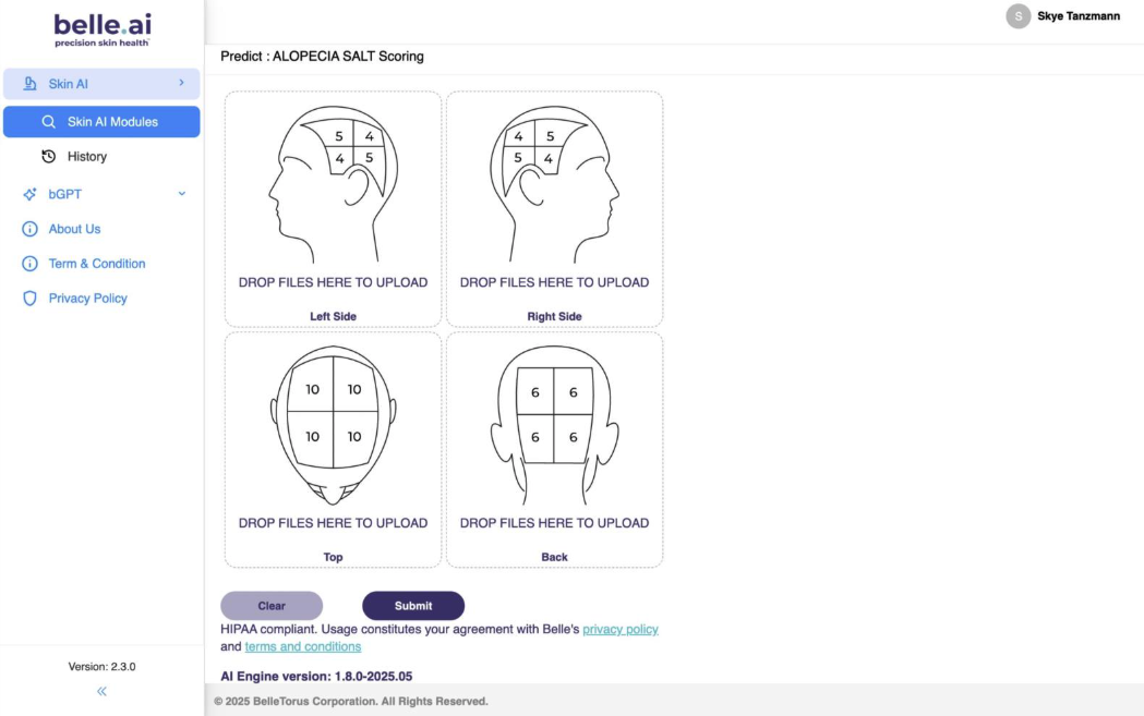 - Upload an image of the left side, right side, top, and back of the head. Note that this module requires standardized images (posing the same as the outlines)